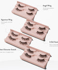 Angel Wing als je zachte, natuurlijke lift wilt. Signature Wing voor elke dag. Main Character Snatch voor boldere drama. It Girl Snatch voor maximale cat-eye verlenging.