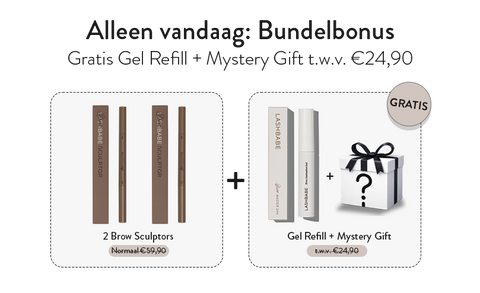 Deze bundel geeft je twee Brow Sculptors, een gratis Clear Gel Refill en een gratis Mystery Gift. Alles wat je nodig hebt voor wenkbrauwen die 48 uur blijven zitten en voller worden met elke keer dragen.