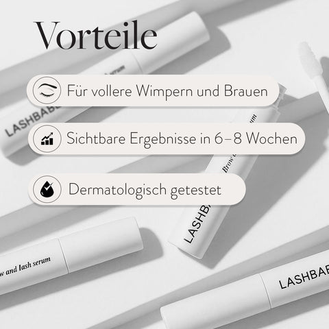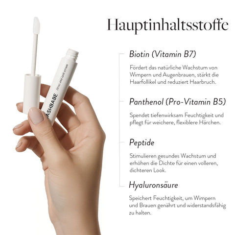 Erhältlich als Nachtserum zur Rundumpflege von Wimpern und Augenbrauen.