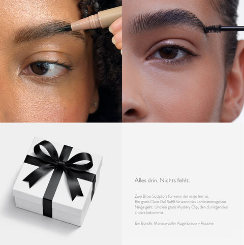 Dieses Set enthält zwei Brow Sculptors, eine kostenlose Clear Gel Refill und ein kostenloses Mystery Gift. Alles, was Sie für Augenbrauen brauchen, die 48 Stunden lang halten und mit jedem Tragen voller werden.