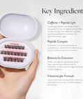 Wij ontwikkelden ’s werelds eerste pre-glued lashes met Caffeine + Peptide verwerkt in de bonding.