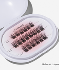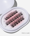Plaats de cluster onder je natuurlijke wimpers, zo dicht mogelijk tegen je wimperrand. 5–10 seconden zacht aandrukken en klaar. Mix lengtes voor een natuurlijke opbouw of stack ze voor extra volume. Binnen 1< minuut aangebracht.